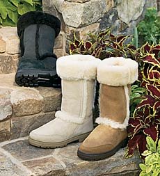 Brand New in the box! The wool of genuine sheepskin is extremely dense which provides for a more comfortable anddurable material. Fleece breathes, wicks moisture away, and allows air to circulate,keeping feet dry. It is naturally water resistant and therefore small amounts of moisturewill not seep through or damage it.This is the ultimate sheepskin boot, with a warm shearling lining and fold-down cuff withadjustable toggle. It features a distressed suede toe, heel and rear shaft overlay withreinforced stitched seam accents on the shaft and ankle. Finished with a comfy flexiblerubber sole and low heel. The logo is displayed on the back of the boot.